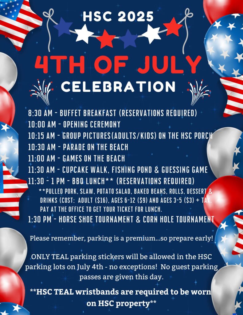 🚗 Important Parking Notice Only vehicles with TEAL parking stickers will be allowed in the HSC parking lots on July 4th – no exceptions.