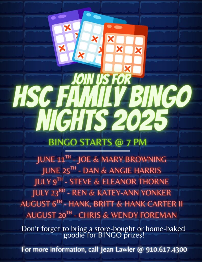Get ready for a night of fun and friendly competition! Our first Bingo of the season is tomorrow night—hosted by the always-spirited Browning Family! Laughter, prizes, and good company guaranteed—don’t miss it!